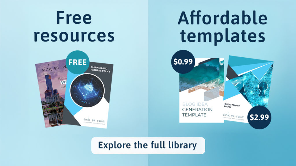 Whether you’re downloading a free checklist or investing in a template that will simplify your operations, our resources are here to help you grow. At Sink or Swim Marketing, we provide the tools you need to do more than just survive in business, we help you swim.